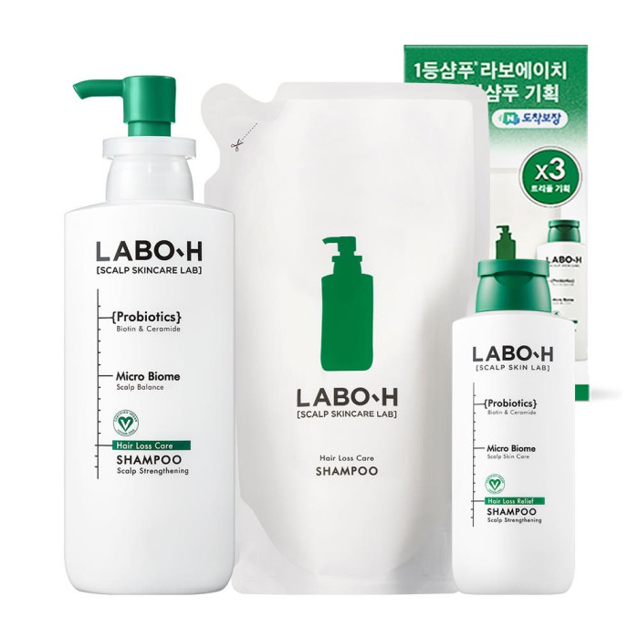 라보에이치 탈모샴푸 약산성 대용량 두피 비건 400ml+400ml리필+180ml > 화장품/미용
