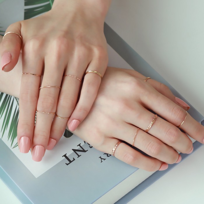 모델 로즈골드 14k 컷팅 열손가락 레이어드 실반지