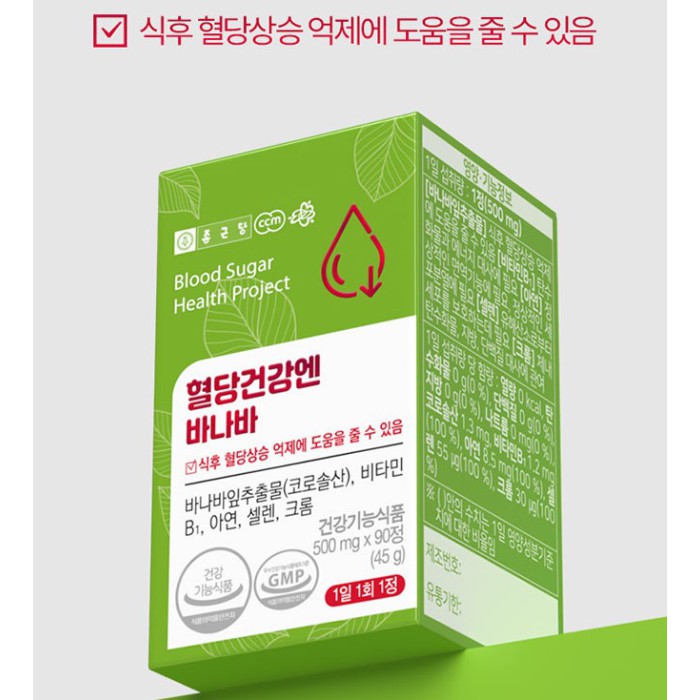 종근당 바나바잎 추출물 혈당케어 코로솔산 영양제 90정 (3개월분) > 바나바잎추출물